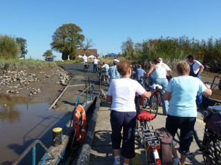 Der handbetriebene, am Seil geführte Fährprahm kann bis zu drei Pkw und etwa 30 Passagiere transportieren.